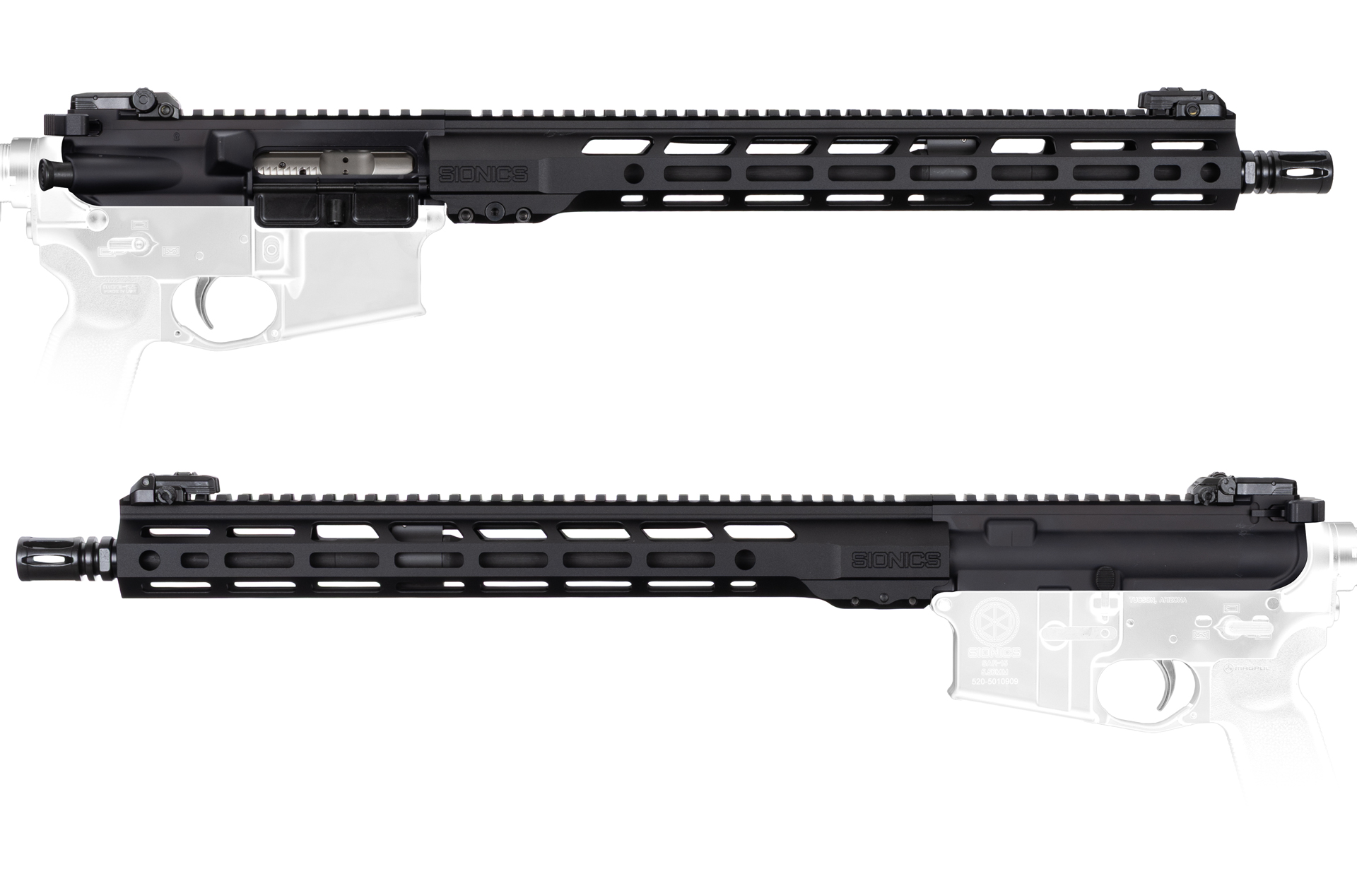 Hand Guard: SIONICS 14.125″ M-LOK Handguard or upgrade to a SIONICS 15″ M-LOK Handguard